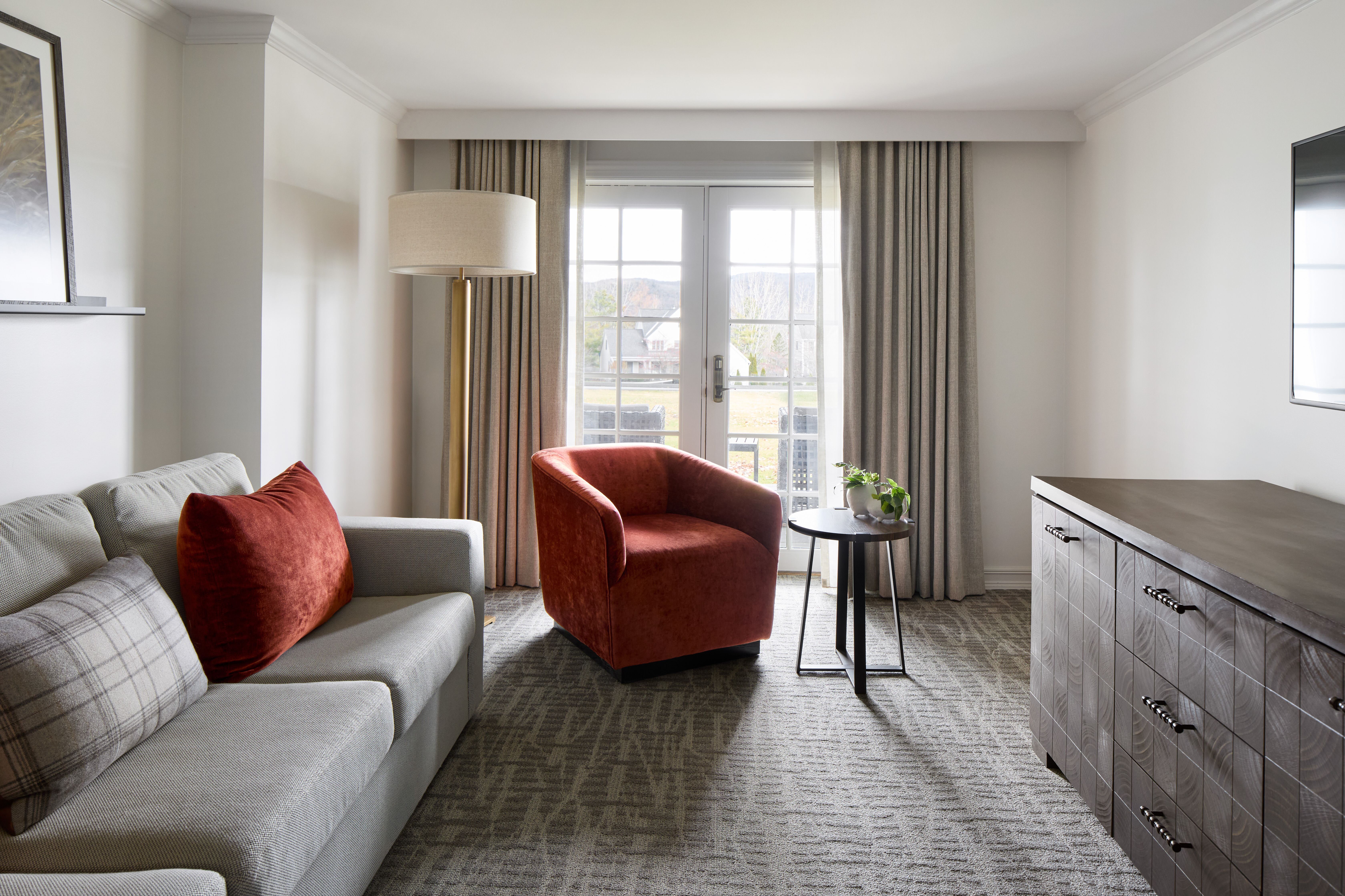 Rest easy in this elegant ADA-friendly suite, furnished with one king bed, a roll-in shower, and a separate living room.