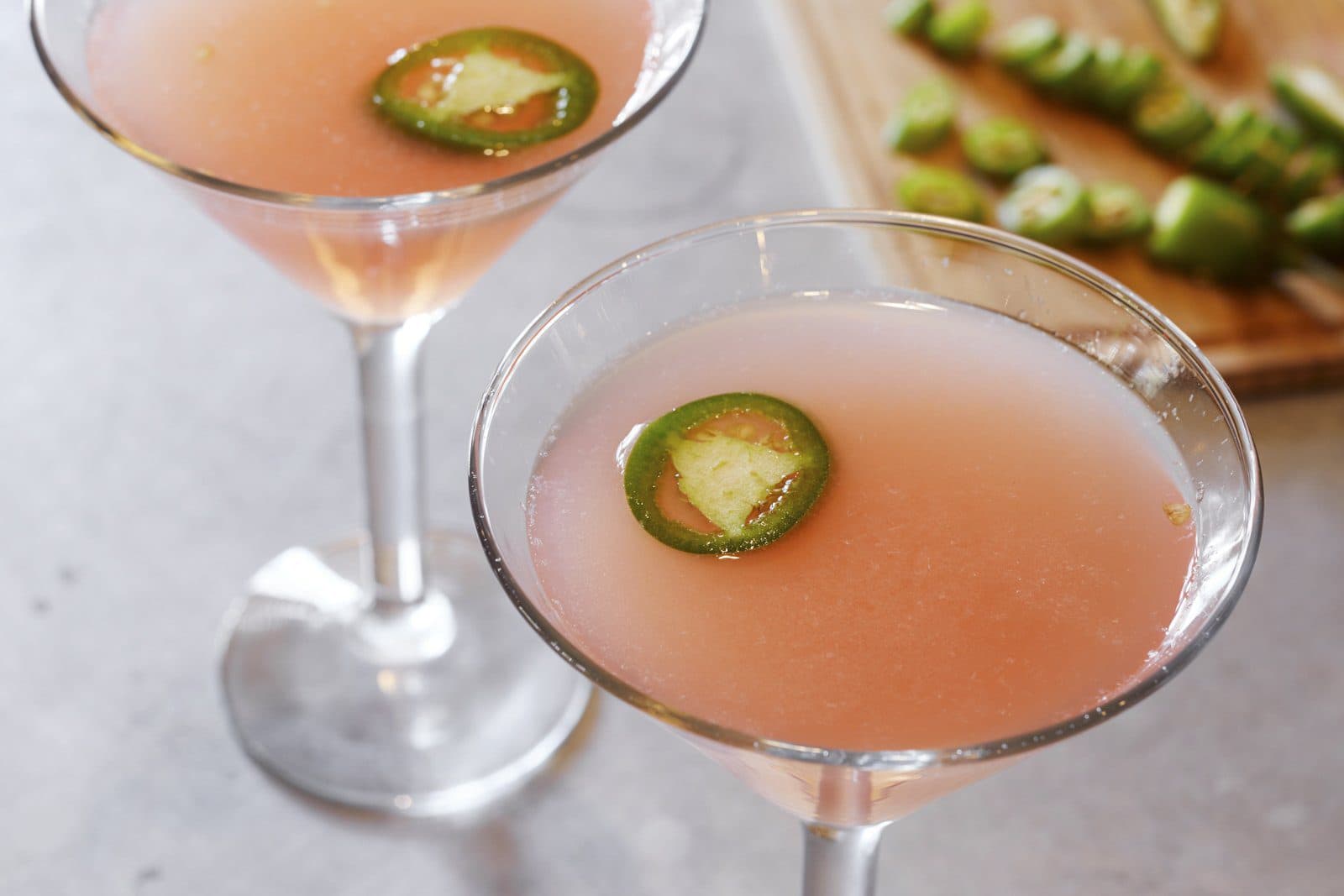 - Garnish with Jalapeño slice.
